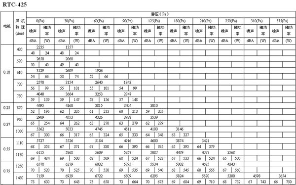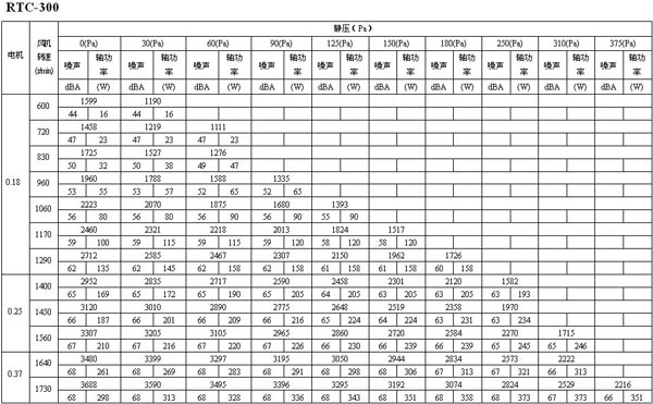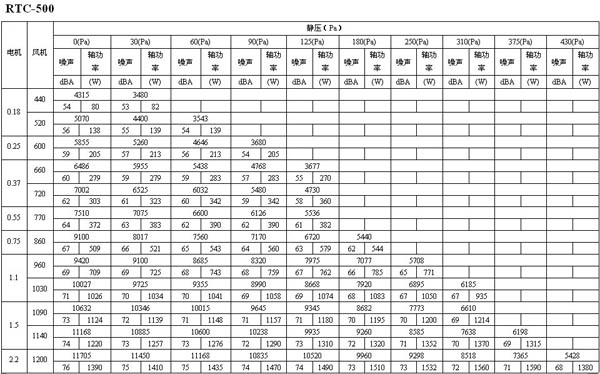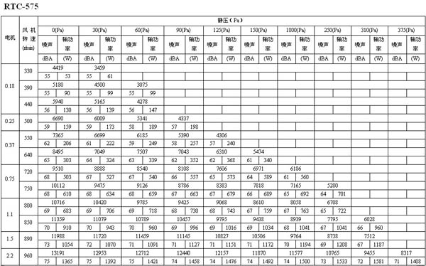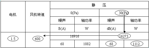 如下面的表格所示,如果選用風量為16273m3/h,靜壓為30Pa的風機,其轉速為600 r/min,聲壓級為68dB(A),實際耗功率為1112W,選配電機功率為1.5kW。