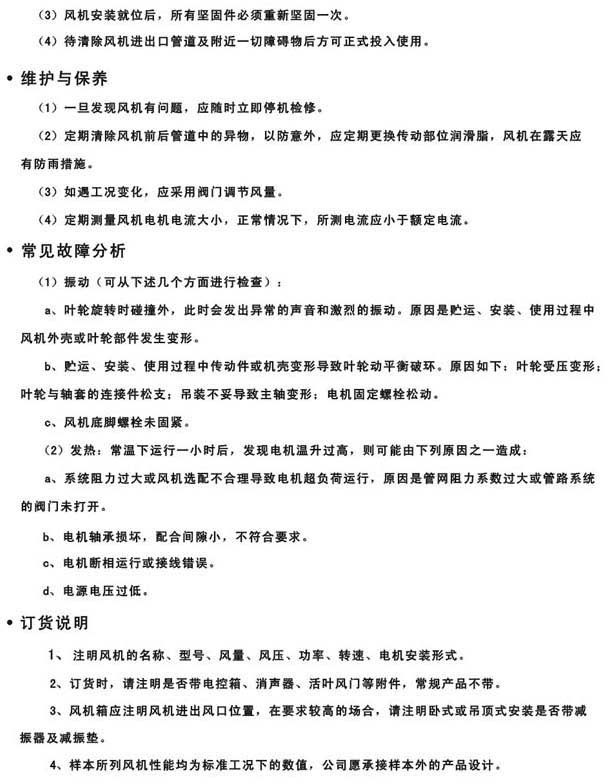 1、4-72、4-79型離心風(fēng)機 2、9-19、9-26型高壓離心風(fēng)機 六、冷卻風(fēng)機系列 1、LFF型冷庫專用風(fēng)機 2、DBF型變壓器專用風(fēng)機 3、SFZ型空調(diào)室外機組冷卻風(fēng)機 七、GDF系列離心式管道風(fēng)機 八、YDF系列噴流誘導(dǎo)風(fēng)機 九、SDS系列射流式通風(fēng)機 十、HG系列變風(fēng)量風(fēng)機箱 十一、HVD低噪聲吸頂式房間通風(fēng) 十二、SR900、DJF型電動腳踏兩用 十三、防火閥、排煙閥、風(fēng)口 十四、消聲器系列 十五、安裝、維護及訂貨說明 |