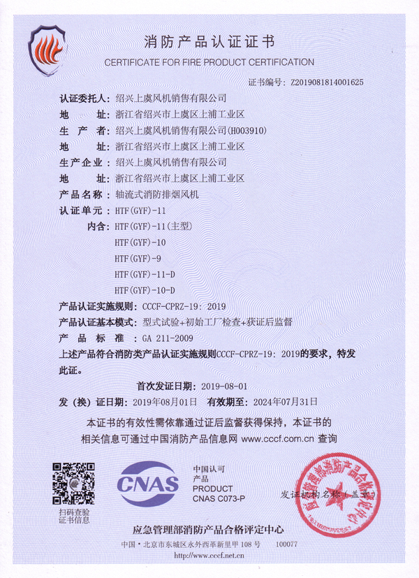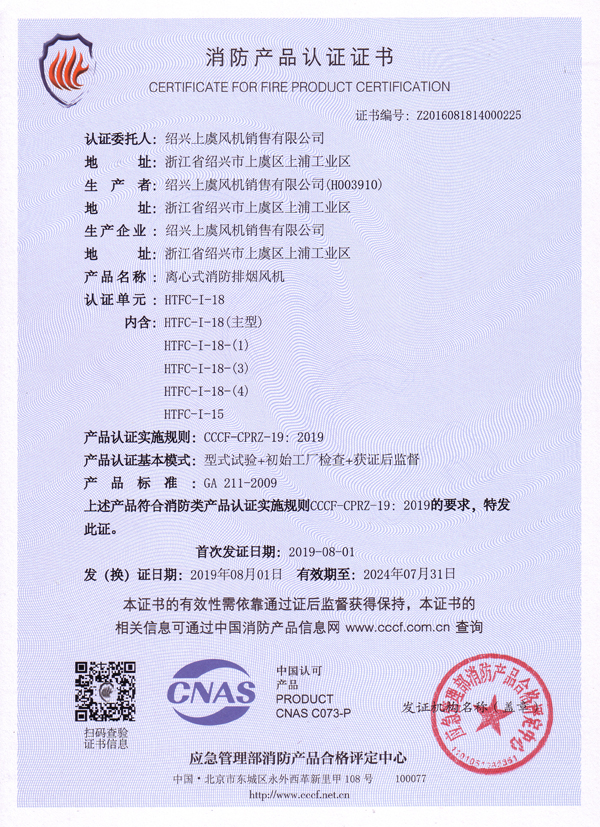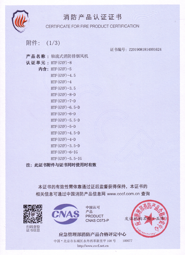 ISO9001:2000質量體系認證·國家消防CCCF認證企業風機專業制造商